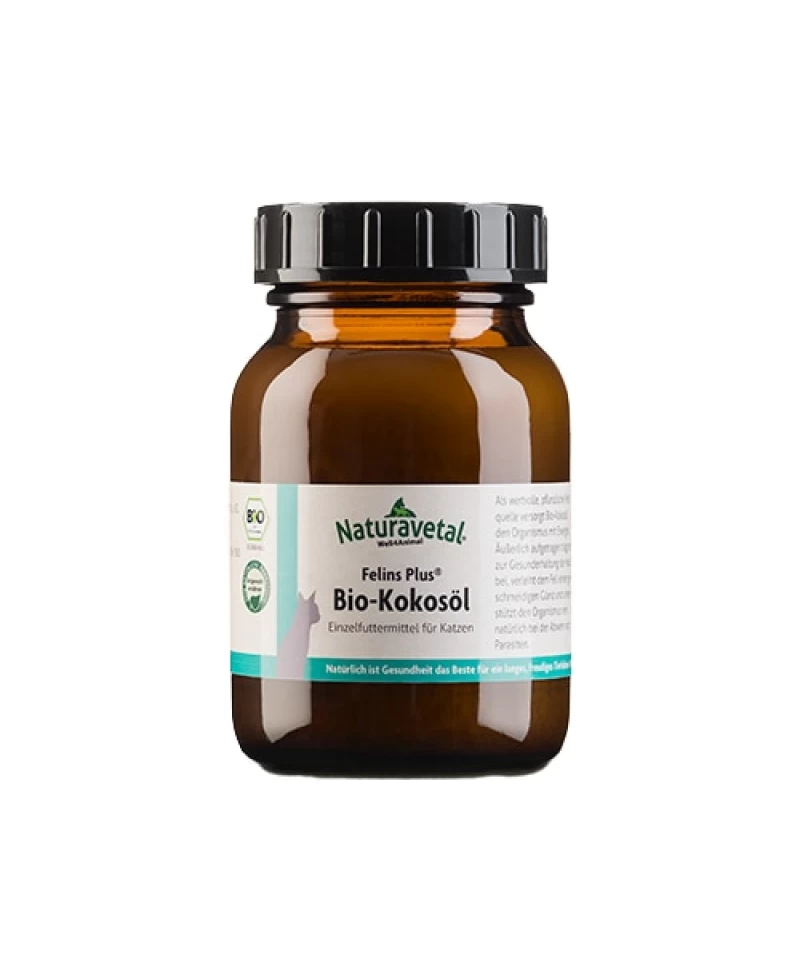 Naturavetal BIO kokosovo olje služi kot visokokakovosten, rastlinski vir maščob pri hranjenju, ki lahko razbremeni prebavni trakt, trebušno slinavko in tudi jetra. Uporablja se ne samo za uživanje, ampak tudi zunanje in lahko na različne načine podpira organizem vaše mačke ter prispeva k njenemu zdravju. Kokosovo olje je tudi izjemnega okusa, zato ga z veseljem poje večina mačk.