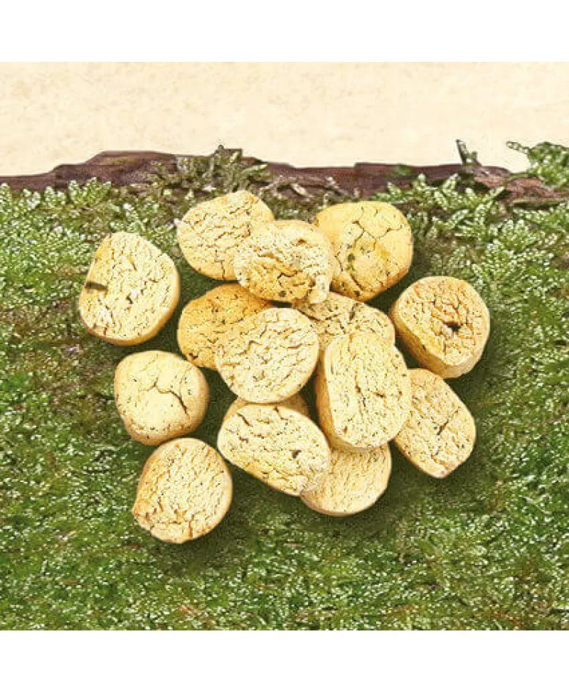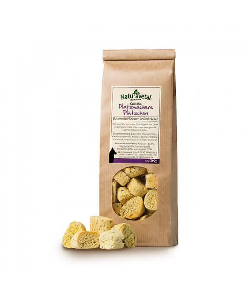 Canis Plus pasji piškoti slastni zalogajčki so okusni piškoti iz pinjenca in kombinacije različnih zelišč. Piškoti so primerni za vse pasje kosmatince, ki imajo težave z glutenom, piškoti so namreč brez glutena. Pinjenec nastane pri proizvodnji masla ali smetane. Je lahko prebavljiv, vsebuje malo mlečnih maščob, veliko beljakovin in je bogat s kalcijem. Piškoti vsebujejo pet dragocenih in posebej izbranih zelišč z vrta narave - peteršilj, drobnjak, krebuljica, kreša, kislica. Piškoti vsebujejo še polnozrnatno proseno moko, polnozrnatno riževo moko in koruzno moko. Koruzna moka je še posebej bogata z magnezijem, kalijem in fosforjem.