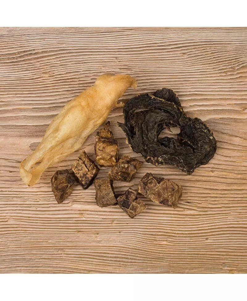 Zanimiv in pester prigrizek, tudi za zelo alergične in izbirčne pse. V paketku se nahajajo različni funkcionalni priboljški: jelenja pljuča, ki so zelo nizko kalorična. Pljuča so narezana na mini kocke, tako da so idealen priboljšek na sprehodih ali v pasji šoli. Paketek vsebuje tudi dva ušesa jelena, ki sta odlična izbira, da svojeja psa zamotite za dlje časa. Ta priročna "žvečljivka" služi določenemu namenu. Umska zaposlitev vašega psa, ki skrbi tudi za masažo dlesni in za čiščenje zobnih oblog. Jelenje srce je bogato s številnimi hranilnimi snovmi, vitamini, minerali, Q10 in drugimi elementi. Jelenje srce je zdrava poslastica za vašega psa. Paketek jelenji mix je odlična alternativa priboljškom, ki so iz goveda.