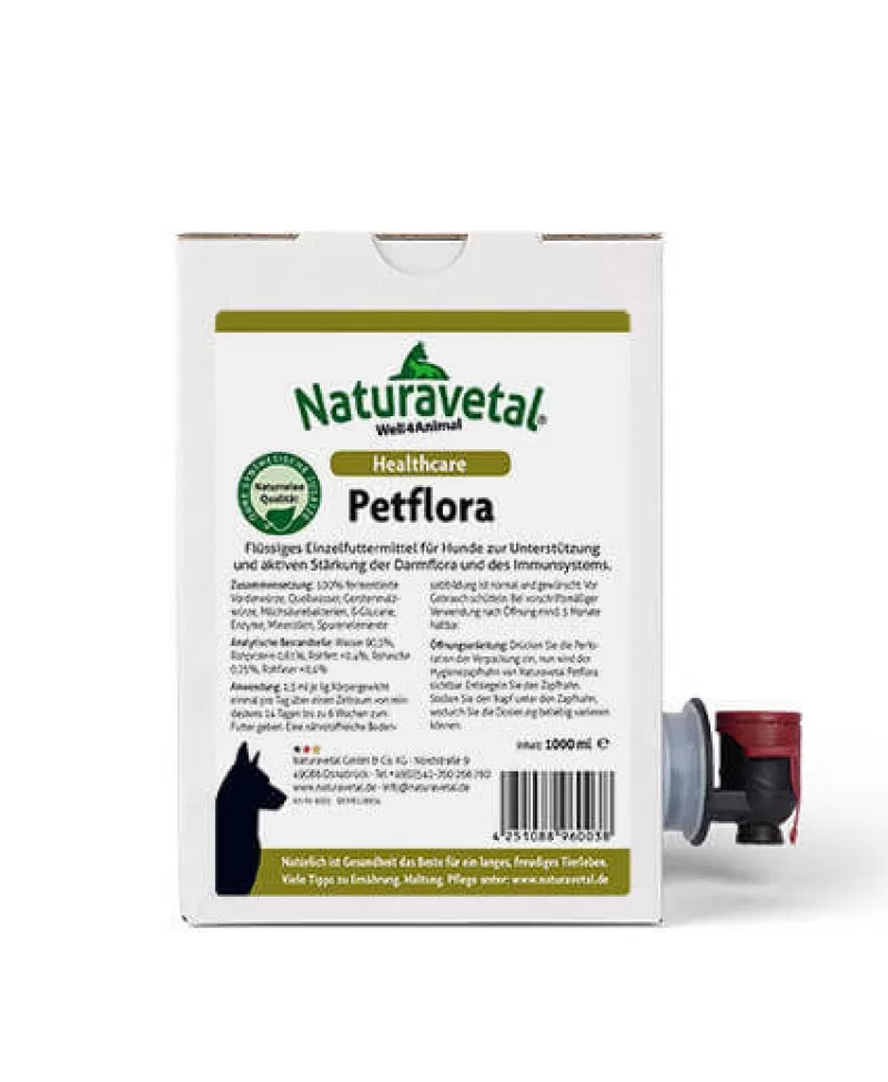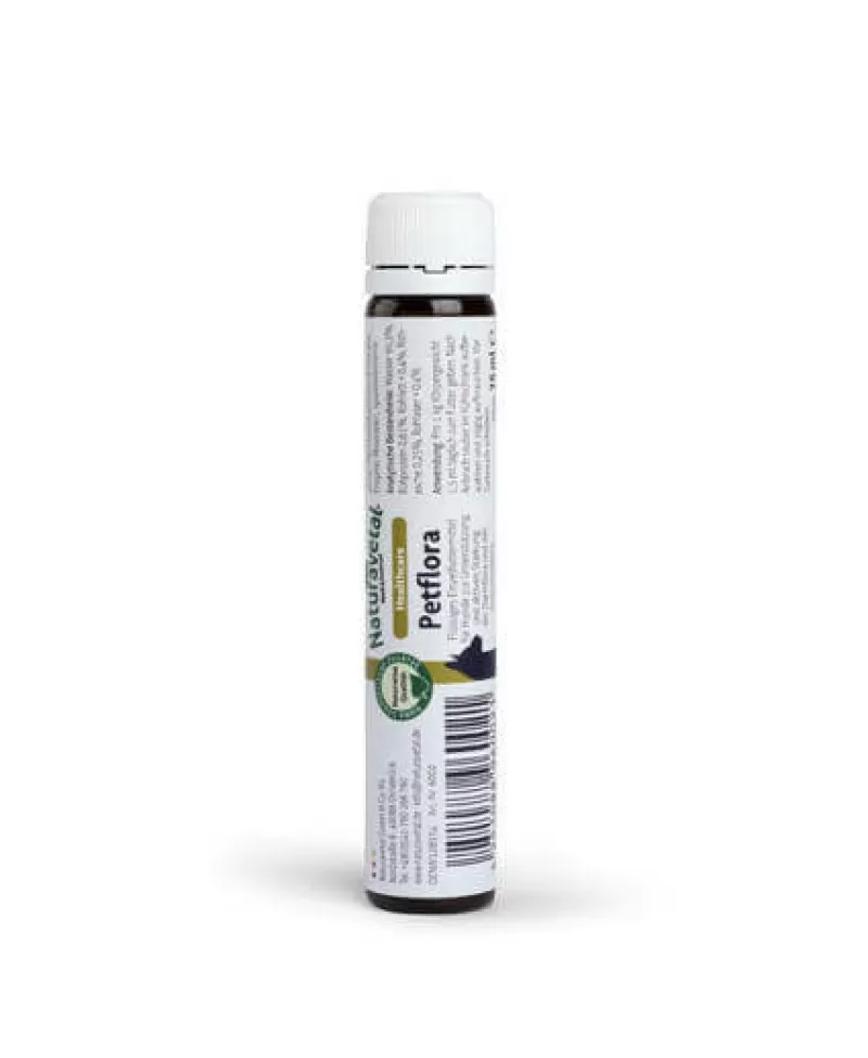 Naturavetal Petflora probiotične bakterije za pse so naravno prehransko dopolnilo za pse, izdelano iz fermentirane ječmenovke, izvirske vode in milijard kultiviranih mlečnokislinskih bakterij. V fermentacijskem procesu mlečnokislinske bakterije tvorijo koristne snovi za presnovo psa, kot je mlečna kislina, encimi, aminokisline, antioksidanti in vitamini. Mlečna kislina zavira rast patogenih bakterij in spodbuja razvoj koristnih mlečnokislinskih bakterij. Petflora je proizvedena s probiotičnimi bakterijami, zato lahko pomaga stabilizirat črevesno floro psa. Druge sestavine (minerali, elementi v sledeh, in beta-glukani) pa krepijo celoten organizem, imunski sistem psa in odpornost psa.