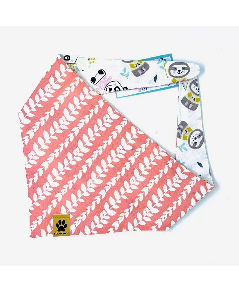 Rutka za pse Nola je nepogrešljiv dodatek za vašega kosmatinca. Rutka je narejena iz bombažnega poplina v roza barvi s belimi lističi nanizanimi v vrstah. Druga stran rutke je bele barve z razigranimi panda medvedki. Svetla in temna kombinacija se bo tako podala vse kosmatincem, ne glede na barvo kožuščka. Rutka za pse se lahko nosi na sprehodih, doma na kavču, za res dobre in odštekane fotke ali kadar se s kosmatincem odpravite na obisk k pasjim prijateljem. Rutka se preprosto zaveže okrog vratu in se lahko nosi na obeh straneh v dveh različnih motivih.