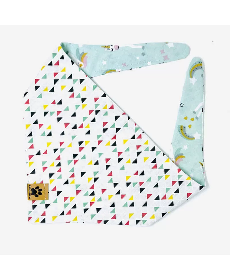 Rutka za pse Vili je lep modni dodatek za vašega kosmatinca. Rutka je dvostranska iz tetra zračnega blaga. Blago je prejetno, lahkotno in zračno, primerno tudi za vroče dni. Ena stran je bele barve s simpatičnimi kiti po imenu Vili. Druga stran je iz privlačnega belo-sivega vzorca. Rutka je svetlejše barve, zato bo prišla bolj do izraza na temnejši dlaki. Rutka za pse se lahko nosi na sprehodih, doma na kavču, za res dobre in odštekane fotke ali kadar se s kosmatincem odpravite na obisk k pasjim prijateljem. Rutka se preprosto zaveže okrog vratu.