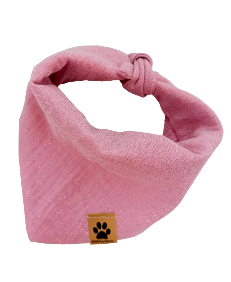 Rutka za pse Simba je nežen modni dodatek za vašega kosmatinca. Rutka je v svetlo roza barvi, posejana z drobnimi bleščicami, ki se na svetlobi različno svetlikajo. Zaradi kombinacije barv se bo rutka Simba podala na vsako barvo dlake in tako obogatila karakter pasje princeske. Rutka za pse se lahko nosi na sprehodih, doma na kavču, za res dobre in odštekane fotke ali kadar se s kosmatincem odpravite na obisk k pasjim prijateljem. Rutka je dvostranska v enakem motivu, nosi se lahko na obeh straneh in se preprosto zveže okrog vratu. Rutka je šivana na trikotnik, tako da je za lažje zavezovanje smiselno, da se zgornji rob zaviha.